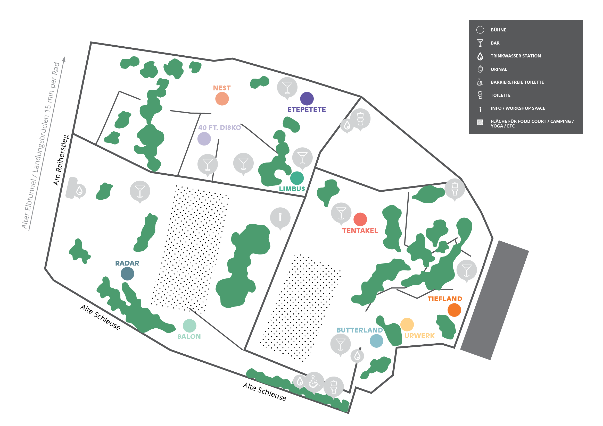Abgegrenzter und vielfältig nutzbarer Eventbereich inkl. Bar & Terrassen und Sanitär. Ideal für sommerliche Feste, After-Work-Sessions oder Kick-offs mit 100–350 Gästen. Geschützt und stimmungsvoll eingerahmt von einer Container-Installation.